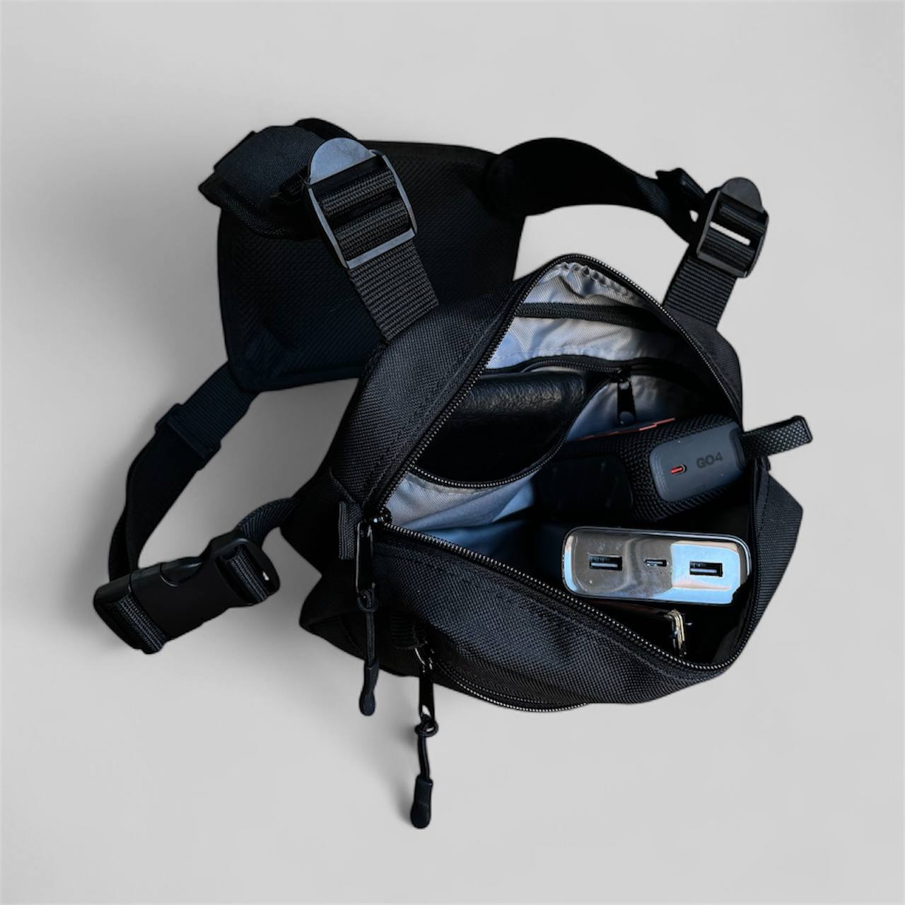 Diseñada para quienes buscan funcionalidad sin sacrificar el estilo, esta pechera táctica de alta capacidad es la aliada perfecta tanto para el uso diario como para viajes. Con dimensiones aproximadas de 24 x 14 x 7 cm, ofrece un equilibrio ideal entre tamaño compacto y gran capacidad de almacenamiento.