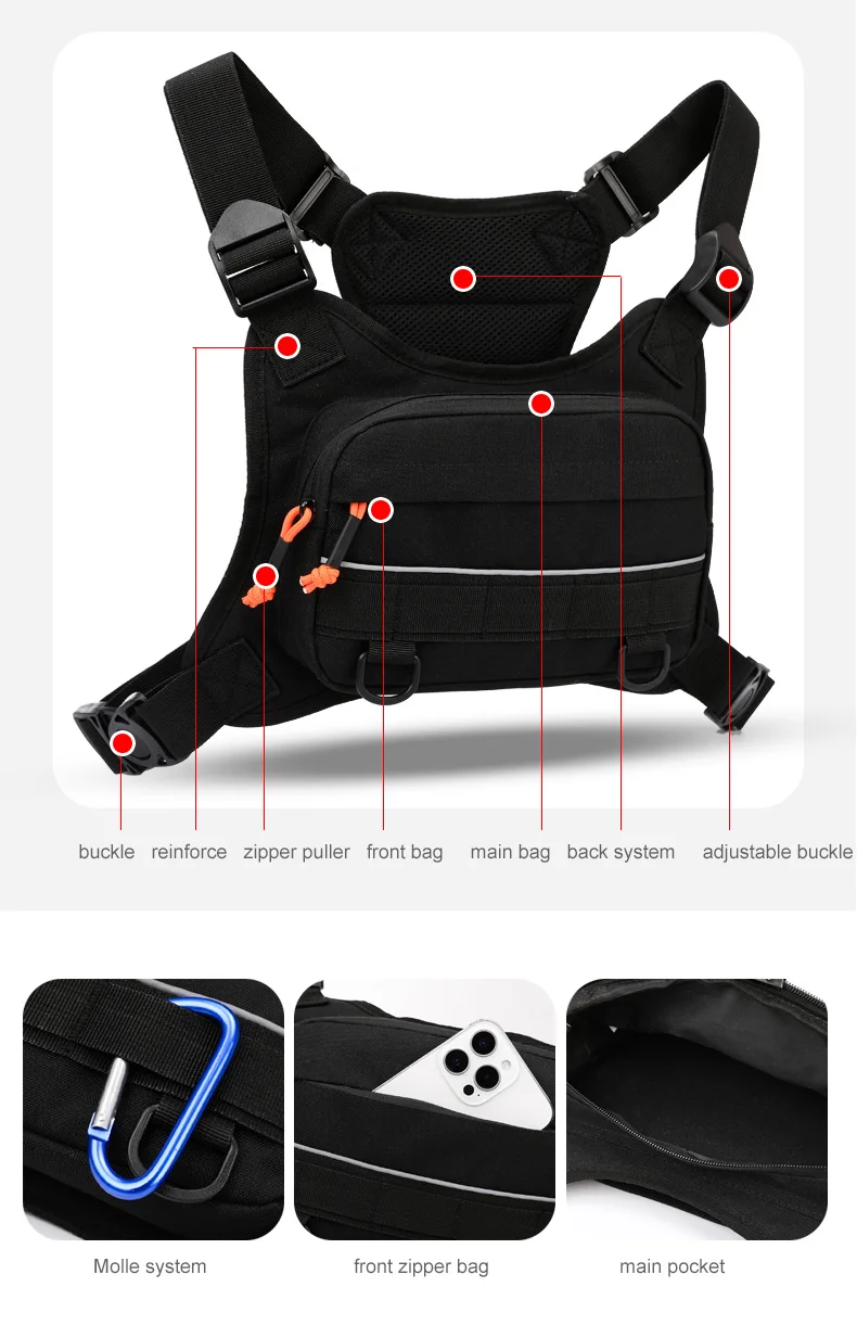 Diseñada para quienes buscan comodidad, seguridad y funcionalidad en cada entrenamiento o aventura. Esta bolsa de pecho tipo chaleco es ideal para running, ciclismo, senderismo, trote, escalada, pesca y actividades al aire libre, ofreciendo un ajuste estable y un acceso rápido a tus objetos esenciales.